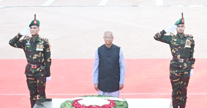 প্রধান উপদেষ্টা অধ্যাপক মুহাম্মদ ইউনূস শহীদ বুদ্ধিজীবীদের প্রতি গভীর শ্রদ্ধা নিবেদন করেছেন। তিনি আজ রোববার সকালে শহীদ বুদ্ধিজীবী দিবসে রাজধানীর মিরপুরে শহীদ বুদ্ধিজীবী স্মৃতিসৌধে পুষ্পস্তবক অর্পণ করে জাতির শ্রেষ্ঠ সন্তানদের প্রতি গভীর শ্রদ্ধা জানান । এ সময় ঘড়ির কাঁটায় সময় সকাল ৭টা ২২ মিনিট।পুষ্পস্তবক অর্পণের পর জাতির শ্রেষ্ঠ সন্তানদের স্মৃতির প্রতি শ্রদ্ধা জানাতে সেখানে প্রধান উপদেষ্টা কিছুক্ষণ নীরবে দাঁড়িয়ে থাকেন।এ সময় বাংলাদেশ সশস্ত্র বাহিনীর একটি চৌকস দল রাষ্ট্রীয় সালাম জানায়। বিউগলে করুণ সুর বেজে ওঠে।শ্রদ্ধা নিবেদন শেষে প্রধান উপদেষ্টা, প্রধান বিচারপতি, অন্তর্বর্তী সরকারের উপদেষ্টাবৃন্দ, ঊর্ধ্বতন বেসামরিক ও সামরিক কর্মকর্তাদের সঙ্গে কুশল বিনিময় করেন।পাশাপাশি তিনি আহত বীর মুক্তিযোদ্ধা এবং শহীদ বুদ্ধিজীবীদের পরিবারের সদস্যদের সঙ্গে কথা বলেন ।একাত্তরের নয় মাসের রক্তক্ষয়ী মুক্তিযুদ্ধ যখন বিজয়ের দ্বারপ্রান্তে, ঠিক তখনই এই ভয়াবহ হত্যাকাণ্ড সংঘটিত হয়। স্বাধীনতার সূর্য ওঠার আগমুহূর্তে পাকিস্তানি হানাদার বাহিনী পরিকল্পিতভাবে বাঙালি জাতিকে মেধাশূন্য করার চেষ্টা চালায়।এর আগে, রাষ্ট্রপতি মো. সাহাবুদ্দিন সকাল আনুমানিক ৭টা ০৪ মিনিটে শহীদ বুদ্ধিজীবী স্মৃতিসৌধে পুষ্পস্তবক অর্পণ করে শহীদ বুদ্ধিজীবীদের প্রতি গভীর শ্রদ্ধা জানান।