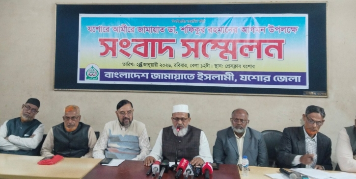 বাংলাদেশ জামায়াতে ইসলামী’র আমির ডা. শফিকুর রহমানের যশোরে নির্বাচনী জনসভায় আগমন উপলক্ষে এক সংবাদ সম্মেলন অনুষ্ঠিত হয়েছে। রোববার (২৫ জানুয়ারি) দুপুরে প্রেসক্লাব যশোর মিলনায়তনে এ সংবাদ সম্মেলনের আয়োজন করে জামায়াতে ইসলামী যশোর জেলা শাখা।সংবাদ সম্মেলনে সভাপতিত্ব করেন জেলা জামায়াতের আমির অধ্যাপক গোলাম রসুল।এতে উপস্থিত ছিলেন যশোর-৩ আসনের জামায়াত সংসদ সদস্য প্রার্থী ভিপি আব্দুল কাদের,জেলা জামায়াতের সহকারী সেক্রেটারি বেলাল হুসাইন, গোলাম কুদ্দুস, মাওলানা রেজাউল করিম,প্রচার সেক্রেটারি শাহাবুদ্দিন বিশ্বাস, অফিস সেক্রেটারি নূরে আলী নূর মামুন,যশোর জেলা জামায়াতের সাংগঠনিক পেশাজীবী থানার সেক্রেটারি আবু ফয়সাল, সদর উপজেলা জামায়াতের আমির আশরাফ হোসেন, শহর জামায়াতের ভারপ্রাপ্ত আমির মাওলানা ইসমাইল ও সহকারী সেক্রেটারি মনিরুল ইসলাম সহ অন্যান্য নেতৃবৃন্দ।সংবাদ সম্মেলনে নেতৃবৃন্দ জানান, দেশের চলমান রাজনৈতিক প্রেক্ষাপটে জনগণের অধিকার, সুশাসন, ন্যায়বিচার ও ইসলামী মূল্যবোধ প্রতিষ্ঠার লক্ষ্যে আগামী ২৭ জানুয়ারি যশোরে এই নির্বাচনী জনসভার আয়োজন করা হয়েছে। এ জনসভায় যশোরসহ আশপাশের জেলার বিপুল সংখ্যক নেতাকর্মী ও সাধারণ মানুষের অংশগ্রহণ প্রত্যাশা করা হচ্ছে।নেতৃবৃন্দ আরও জানান, জনসভা সফল করতে সকল প্রস্তুতি ইতোমধ্যে সম্পন্ন হয়েছে এবং শান্তিপূর্ণভাবে কর্মসূচি বাস্তবায়নে প্রশাসনের সহযোগিতা কামনা করা হচ্ছে।এ সময় বক্তারা অভিযোগ করে বলেন, যশোর জেলা প্রশাসন সুষ্ঠু নির্বাচন পরিচালনায় আইন-শৃঙ্খলা রক্ষায় ব্যর্থ হয়েছে। অবৈধ অস্ত্র উদ্ধার ও অস্ত্রধারী চাঁদাবাজ-সন্ত্রাসীদের গ্রেপ্তারে কার্যকর ভূমিকা রাখতে পারেনি প্রশাসন, যার ফলে সুষ্ঠু নির্বাচনের পরিবেশ নিয়ে জনমনে শঙ্কা সৃষ্টি হয়েছে।এছাড়া বক্তারা দাবি করেন, তাদের মহিলা নেতাকর্মীরা নির্বাচনী প্রচারে গেলে একটি দলের লোকজন বাধা দিচ্ছে। বিশেষ করে হায়মুদপুর ও তালবাড়িয়া এলাকায় এ ধরনের ঘটনার কথা সংবাদ সম্মেলনে উল্লেখ করা হয়।