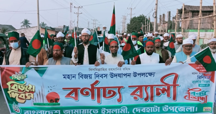 বাংলাদেশ জামায়াতে ইসলামী দেবহাটা উপজেলা শাখার আয়োজনে মহান বিজয় দিবস উপলক্ষে বর্ণাঢ্য র্যালি করা হয়েছে।মঙ্গলবার (১৬ ডিসেম্বর) বিকাল ৪টায় উপজেলা জামায়াত অফিস চত্বর থেকে বিজয় র্যালি শুরু করে উপজেলার বিভিন্ন সড়ক প্রদক্ষিণ করে জামায়াত অফিস চত্বরে এসে এ র্যালি শেষ হয়।এ বিজয় র্যালিতে প্রধান অতিথি ছিলেন, সাতক্ষীরা-২ আসন (সদর-দেবহাটা) জামায়াতের মনোনীত সংসদ সদস্য পদপ্রার্থী বাংলাদেশ জামায়াতে ইসলামীর কেন্দ্রীয় সাংগঠনিক সেক্রেটারী, খুলনা অঞ্চল পরিচালক মুহাদ্দিস আব্দুল খালেক।
