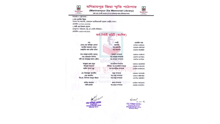 যশোরের মনিরামপুর জিয়া স্মৃতি পাঠাগারের নবনির্বাচিত আংশিক কার্যনির্বাহী কমিটি প্রকাশ করা হয়েছে। আজ বৃহস্পতিবার বিকেলে সংগঠনটির নিজস্ব কার্যালয়ে এক সভার মাধ্যমে ৩০ সদস্য বিশিষ্ট এই নতুন কমিটি ঘোষণা করা হয়। নবগঠিত এই কমিটিতে এ্যাডভোকেট মোঃ আমিমুল এহসান-কে সভাপতি এবং মোঃ নাজমুল ইসলাম হৃদয়-কে সাধারণ সম্পাদক নির্বাচিত করা হয়েছে। কমিটির অন্যান্য উল্লেখযোগ্য পদাধিকারীরা হলেন: সহ-সভাপতি: তানভীর আহমেদ শোভন ও মোস্তাকিম আল রাব্বি সাকিব। যুগ্ম সাধারণ সম্পাদক: মোঃ রেজাওয়ানুল ইসলাম ও গাজী মোঃ মাহফুজ রহমান মুবিন। সাংগঠনিক সম্পাদক: আব্দুল্লাহ আল মামুন। কমিটি ঘোষণার পর সংগঠনের বিভিন্ন পর্যায়ের নেতৃবৃন্দ নবনির্বাচিত এই কমিটিকে স্বাগত জানিয়েছেন। এক অভিনন্দন বার্তায় নেতৃবৃন্দ আশা প্রকাশ করেন যে, নতুন কমিটির নেতৃত্বে জিয়া স্মৃতি পাঠাগারের কার্যক্রম আরও গতিশীল হবে এবং তারা মেধাভিত্তিক সমাজ গঠনে অগ্রণী ভূমিকা পালন করবে। নবনির্বাচিত এই আংশিক কমিটিকে আগামী অল্প সময়ের মধ্যে পূর্ণাঙ্গ করার নির্দেশনা দেওয়া হয়েছে। কমিটির নবনির্বাচিত সকল সদস্যকে সংগঠনের পক্ষ থেকে প্রাণঢালা অভিনন্দন ও শুভকামনা জানানো হয়েছে।